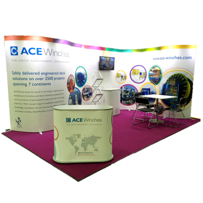We have modern alternatives to standard pop-up frames such as our ISOframe Ripple and ISOframe Wave, which are both flexible systems that can change shape every time you exhibit, so you can decide whether to use it as a straight or curved backdrop at each show.