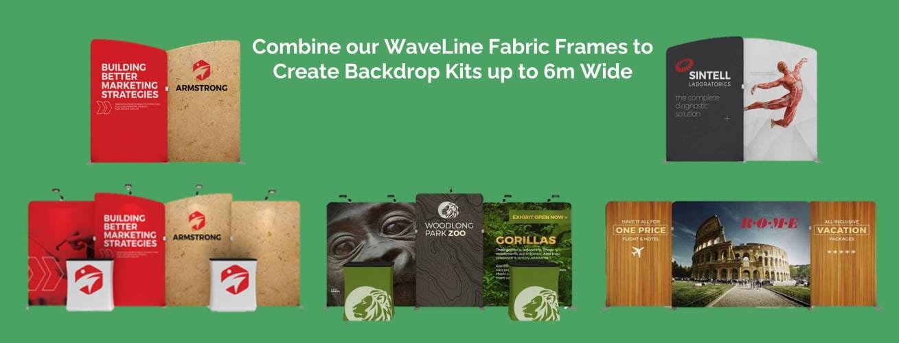 We have a wide range of Tension-Fabric Backdrops for you, dominated by the impressive WaveLine Tension-Fabric Backdrops from BrandStand, which give you an amazing 18 different size options to choose from and can be combined together to form backdrops for larger booths. Add in more variations such as the MonoLith and Merchandiser and we’re confident that you’ll be able to find the exact fabric backdrop that you’re looking for.