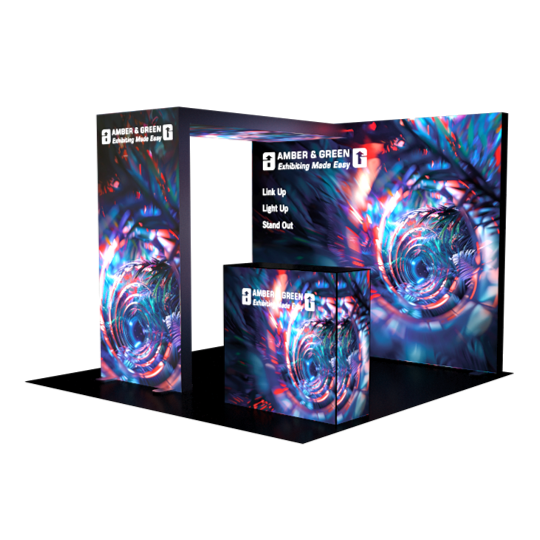 Create impact with our Excite Bridge Lightbox Booth, a dynamic exhibition solution designed to attract and engage. This configuration includes a 2.85mW x 2.25mH Backwall lightbox, seamlessly connected via a Bridge Header lightbox to a Double-sided Lightbox at the front of your booth, offering high-visibility branding from all angles.