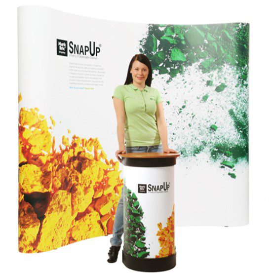The 4×3 Curved Pop-up is best-suited to 4m x 3m Shell Scheme Booths.
