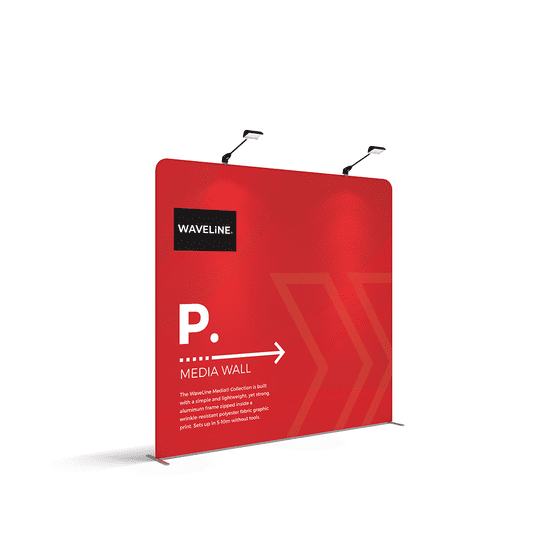 This 2.5mW x 2.3mH WaveLine Tension-Fabric Backdrop is built with a simple and lightweight, yet strong, aluminum frame with a pillow case-style, wrinkle-resistant polyester fabric graphic panel which zips over the frame to create tension and remove creases.