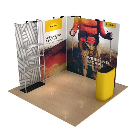 Create an instant Retail Pop-Up Store with the WaveLine® Merchandiser. This kit consists of 2 x standard Fabric Graphic Modules and 1 x Shelving Module. The Shelving Module features 3 shelves that can support up to 4kg each, which can also be placed at different heights and can clamp to both sides of the frame.
